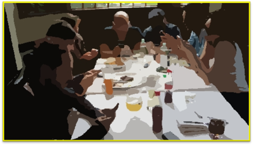 compañía de personas muy queridas en un almuerzo, cena o reunión social. O