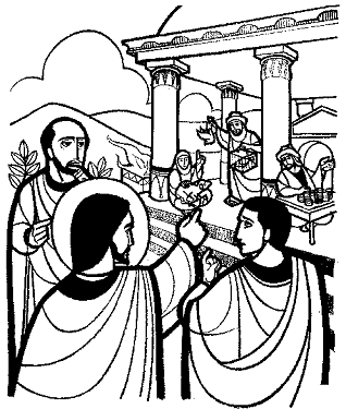 cómo también, al pasar, les volcaba las mesitas de sus puestos. Los evangelistas destacan también la
